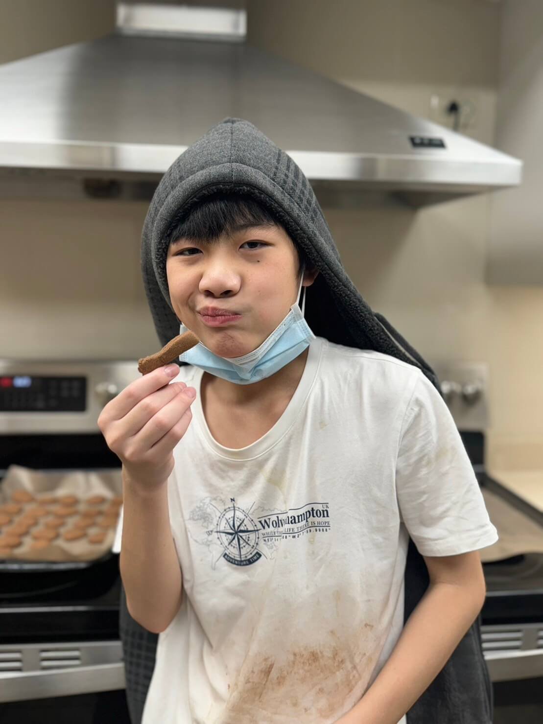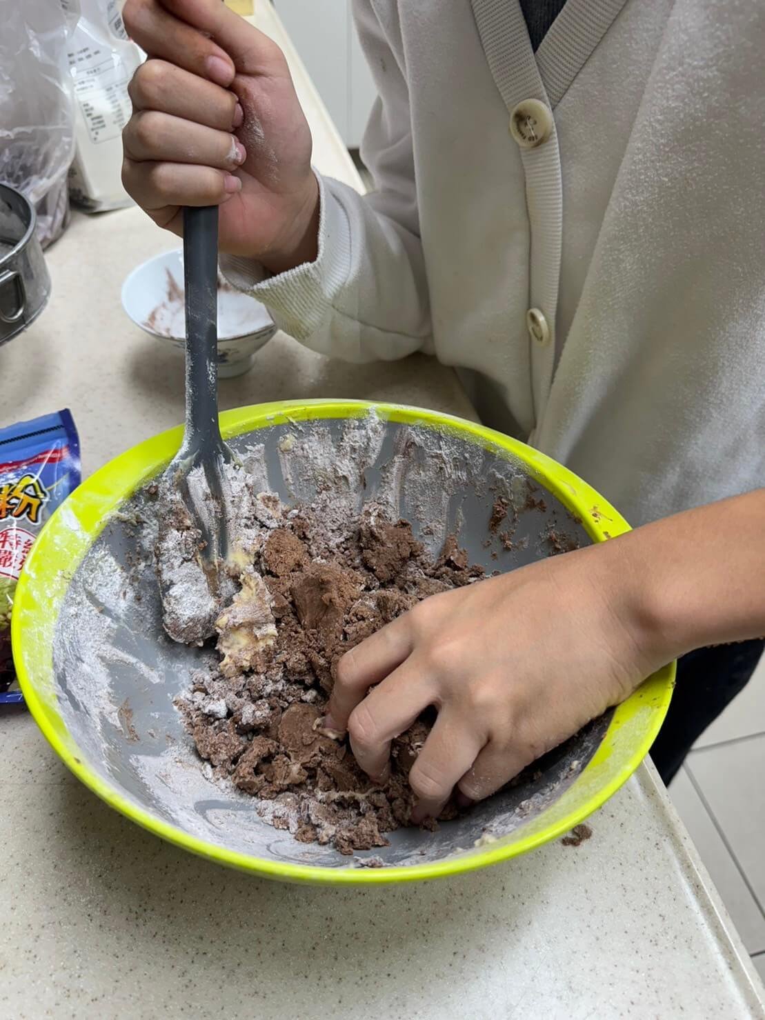 2023-12-23 (星期六) PM 13:00~16:00 我們到教堂做餅乾,大家很認真的在分配工作,我先秤好需要的奶油,我在和白餅乾一起把奶油弄軟,預備好後我們把秤好的麵粉加到奶油裡,再來把麵粉切進奶油裡,把糖粉也加進去,我們後來把麵粉揉成球型然後壓扁,然後我們把餅乾放到烤箱裡,考了30分鐘後我們把餅乾裝到袋子裏,後來我們把餅乾拿到康樂廳分享給參加洗禮會的弟兄姊妹們。