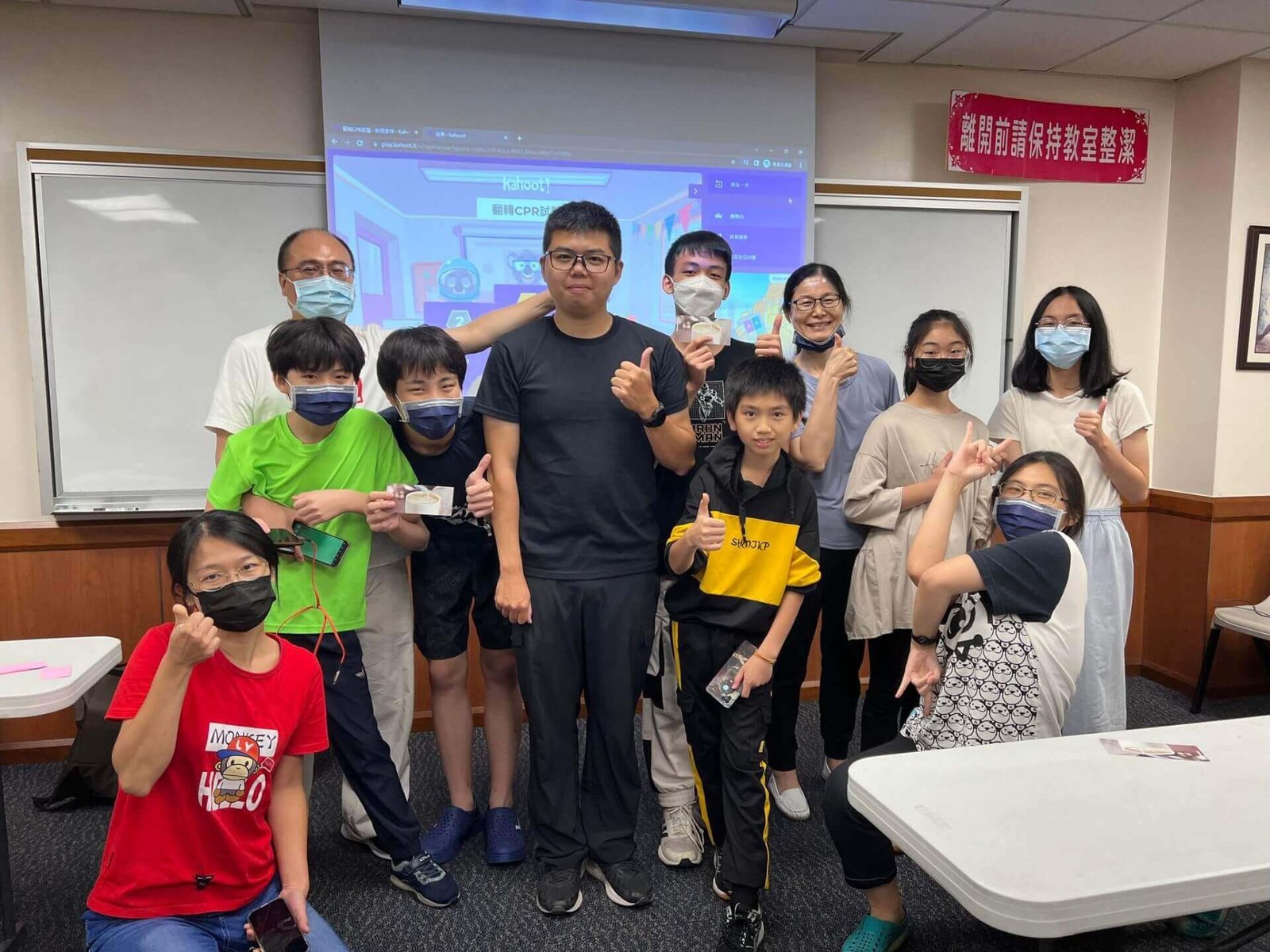男青年皇矗:「謝謝男青年白恩瑞主辦的活動,我們認真學習所以都有通過測驗獲得證書小卡,我們很開心也希望未來有機會能幫助他人。」
